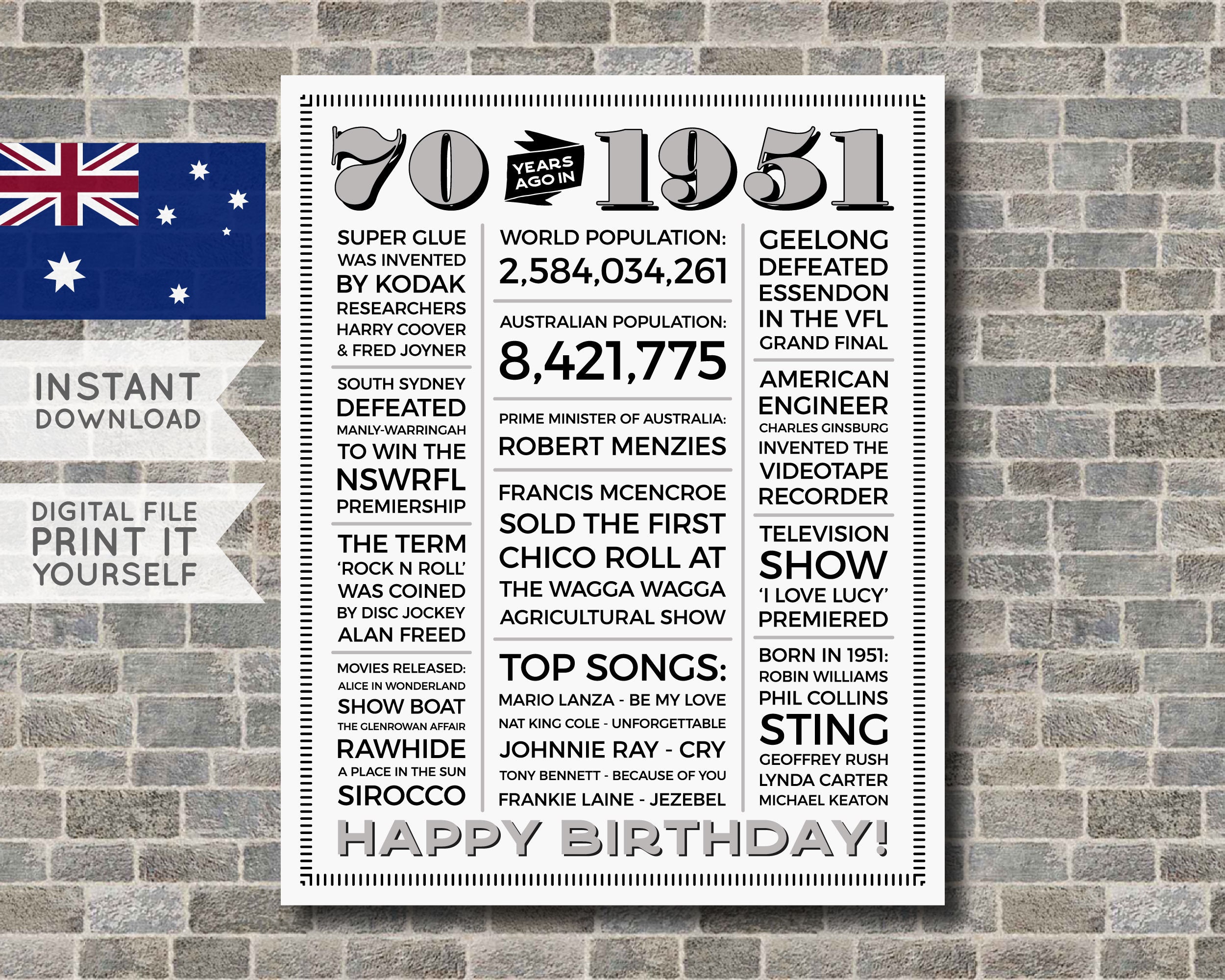 Meaningful 70Th Birthday Gifts Australia : 1949 or 1950 Australian kangaroo penny keychain, keyring ... : It's an honour to reach 70!. What better 70th birthday gift for dad then this innovative cooling and heating fan from bedjet? Get same day birthday gift baskets, cake,flowers delivered to australia. Buying them a gift becomes more challenging to find something meaningful or useful to them. Put together your perfect day with custom invites and thank yous. However, certain people are extremely difficult to buy gifts for, such as older men and women.